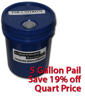 Thunder Series Racing Oil -2 was engineered for moderate to upper horsepower range engine combinations that demand protection under high shear loads and high temperatures at extended periods of run time. TSR-2 has all the same features as the TSR-1, plus endurance based additives that give maximum protection under longer run periods. This formula resists fuel saturations caused by high boost from superchargers/turbo applications. TSR-2 formulation is the perfect blend for all supercharged/turbo and nitrous applications burning Methanol or racing fuel.